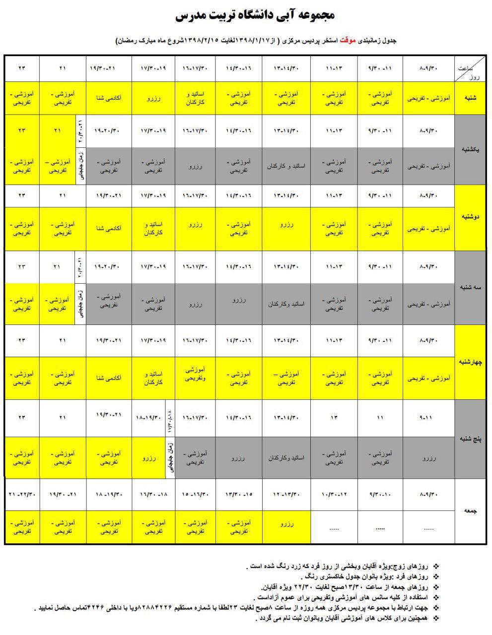 برنامه استخر مرکزی دانشگاه تا 15 اردیبهشت منتشر شد